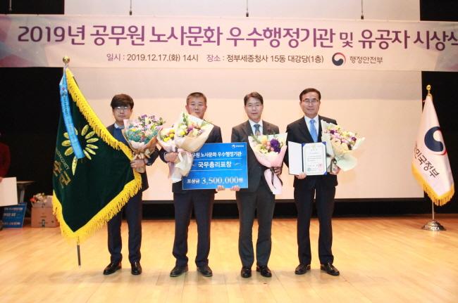 [È£³²´º½º¶óÀÎ = ¼ÀºÈ« ±âÀÚ] ȼø±º(±º¼ö ±¸Ãæ°ï)°ú ȼø±º °ø¹«¿ø³ëµ¿Á¶ÇÕ(À§¿øÀå ¹Ú°æ¹Î)ÀÌ 17ÀÏ ÇàÁ¤¾ÈÀüºÎ°¡ ÁÖ°üÇÑ ¡®2019³â °ø¹«¿ø ³ë»ç¹®È ¿ì¼öÇàÁ¤±â°ü ÀÎÁõÁ¦¡¯ ½É»ç Æò°¡ ¿¡¼ ±¹¹«ÃѸ® ǥâÀ» ¼ö»óÇß´Ù.