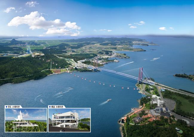 ÄÉÀ̺íÄ« ³ë¼±Àº Áøµµ±º ±º³»¸é ÁøµµÅ¸¿ö¿Í ÇØ³²±º ¿ì¼ö¿µ °ü±¤ÁöÀÌ´Ù. ÁøµµÅ¸¿ö´Â ¿ïµ¹¸ñ°ú ¾Æ¸§´Ù¿î ¾ß°æÀ» ÀÚ¶ûÇÏ´Â Áøµµ´ë±³¸¦ ÇÑ´«¿¡ º¼ ¼ö ÀÖ´Â Áøµµ±ºÀÇ ´ëÇ¥ °ü±¤Áö·Î 115m ³ôÀÌ ¸Á±Ý»ê ²À´ë±â¿¡ À§Ä¡Çϰí ÀÖ´Ù. À̰÷¿¡¼ 10Àν °ïµ¹¶ó ÄÉÀ̺íÄ« 26´ë°¡ ÇØ³²±º ¿ì¼ö¿µ °ü±¤Áö±îÁö À̾îÁö¸ç, ³ë¼±±æÀÌ´Â 920mÀÌ´Ù.