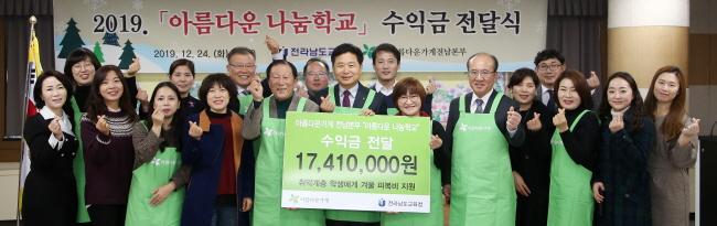 [È£³²´º½º¶óÀÎ = ¼ÀºÈ« ±âÀÚ] ¾Æ¸§´Ù¿î°¡°Ô Àü³²º»ºÎ(°øµ¿´ëÇ¥ ÀÌ»ó·ü¡¤¹Ú¼ÒÁ¤)°¡ 24ÀÏ(È) Àü¶ó³²µµ±³À°Ã»(±³À°°¨ Àå¼®¿õ)¿¡¼ ¿ÃÇØ ÁøÇàÇÑ ³ª´® ÇÁ·ÎÁ§Æ® ¡®¾Æ¸§´Ù¿î³ª´®Çб³¡¯ÀÇ ¼öÀͱÝÀ» Àü´ÞÇß´Ù.