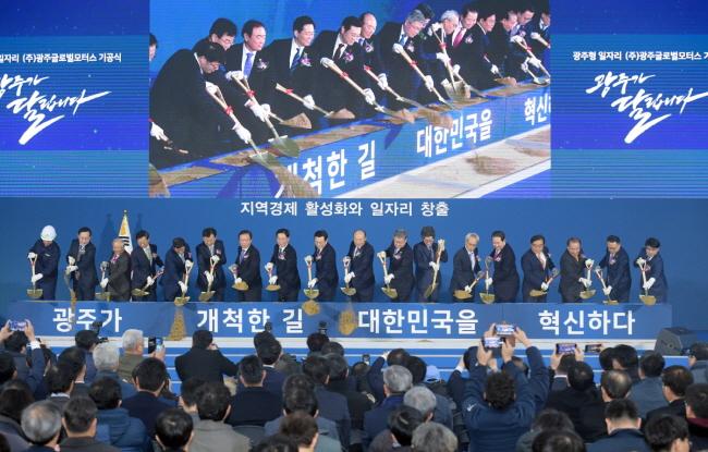 ÇÑÆí, À̿뼷 ½ÃÀåÀº ¡°±¤ÁÖ ½Ã¹ÎµéÀÇ Àû±ØÀûÀÎ ÁöÁö¿Í ¼º¿øÀÌ ÀÖ¾ú±â¿¡ ±¤ÁÖÇü ÀÏÀÚ¸® ¸ðµ¨ÀÇ Ã¹ »ç¾÷ÀÎ ¢ß±¤Áֱ۷ιú¸ðÅͽº ¿Ï¼ºÂ÷ °øÀåÀ» ´çÃÊ °èȹ´ë·Î ¿¬³» Âø°øÇÒ ¼ö ÀÖ¾ú´Ù¡±¸é¼ ¡°¾ÕÀ¸·Îµµ ³Ñ¾î¾ß ÇÒ »êÀÌ ¸¹Áö¸¸ ³ë»ç¹ÎÁ¤ÀÌ ÇÕ½ÉÇØ ÁÖ)±¤Áֱ۷ιú¸ðÅͽº¸¦ ¼¼°èÀûÀÎ ÀÚµ¿Â÷ ±â¾÷À¸·Î À°¼ºÇØ Ã»³âµéÀÇ ÀÏÀÚ¸® ¹®Á¦¸¦ ÇØ°áÇϰí Çѱ¹ °æÁ¦ÀÇ Ã¼ÁúÀ» ¹Ù²Ù´Â Àü±â°¡ µÇµµ·Ï Çϰڴ١±°í ¹àÇû´Ù.