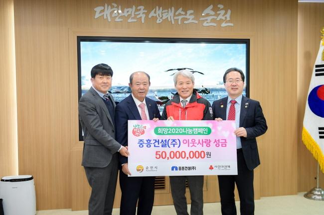 [È£³²´º½º¶óÀÎ = ¼ÀºÈ« ±âÀÚ] ¢ßÁßÈï°Ç¼³(ȸÀå Á¤Ã¢¼±)¿¡¼´Â 12¿ù 26ÀÏ ¼øÃµÁö¿ª Àú¼ÒµæÃþ°ú Ãë¾à°èÃþÀÇ ¡®µû¶æÇÑ ¿¬¸»¿¬½Ã¡¯¸¦ À§ÇØ ¼º±Ý 5õ¸¸¿øÀ» ±âŹÇß´Ù.