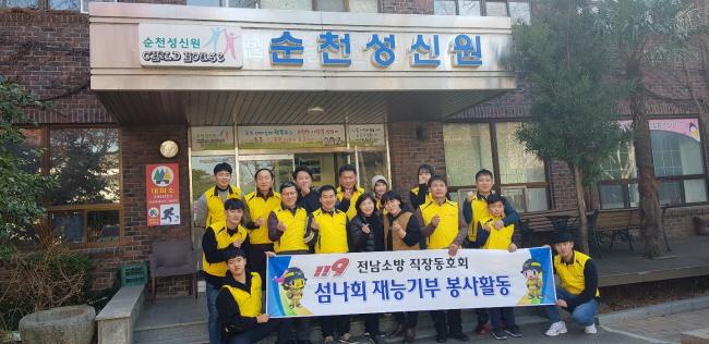 [È£³²´º½º¶óÀÎ = ¼ÀºÈ« ±âÀÚ] Àü³²¼Ò¹æº»ºÎ 119¼¶³ªÈ¸´Â Áö³ 28ÀÏ Åä¿äÀÏ ¼øÃµ½Ã ÀúÀüµ¿¿¡ À§Ä¡ÇÑ ¼øÃµ¼º½Å¿øÀ» ¹æ¹®ÇÏ¿©, ¾î¸°À̵éÀ» À§ÇÑ Â¥Àå¸é ºÀ»çȰµ¿°ú ÇÔ²² ÁغñÇÑ ¼±¹°À» Àü´ÞÇÏ¸ç µû¶æÇÑ ¿¬¸»À» º¸³Â´Ù.