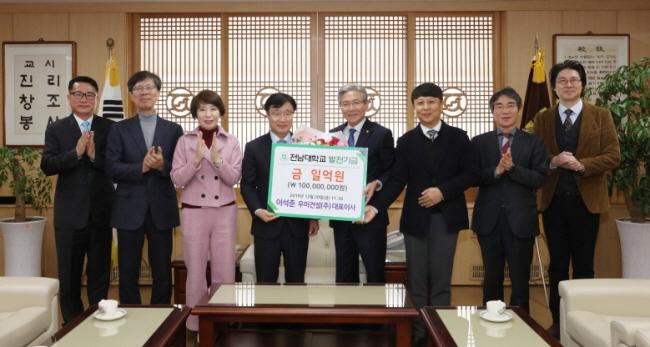 [È£³²´º½º¶óÀÎ = ¼ÀºÈ« ±âÀÚ] Àü³²´ëÇб³´Â ¿ì¹Ì°Ç¼³ À̼®ÁØ ´ëÇ¥°¡ Áö³ 12¿ù 20ÀÏ 1¾ï ¿øÀÇ ´ëÇйßÀü±â±ÝÀ» ±âŹÇß´Ù°í ¸»Çß´Ù.