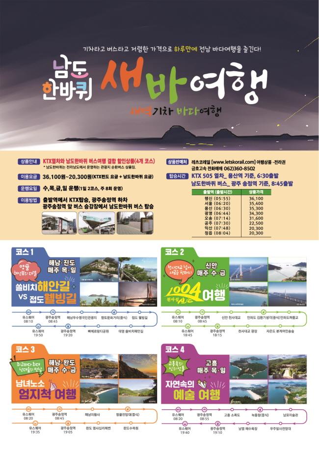 Àü¶ó³²µµ´Â ¶Ç À̹ø °Ü¿ï»óǰ¿¡ óÀ½À¸·Î KTX¿Í ³²µµÇѹÙÄû 4°³ ÄÚ½º¸¦ ¿¬°èÇÑ °áÇÕ»óǰÀÎ ³²µµÇѹÙÄû »õ¹Ù¿©Çà(»õº®±âÂ÷ ¹Ù´Ù¿©Çà)À» Ãâ½Ã, ¼öµµ±Ç ¹× ´Ù¸¥ ½Ã.µµ °ü±¤°´ÀÌ ½±°Ô ³²µµÇѹÙÄû¸¦ Áñ±âµµ·Ï Çϰí ÀÖ´Ù.