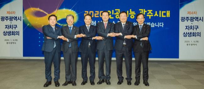 À̿뼷 ±¤ÁÖ±¤¿ª½ÃÀå°ú ÀÓÅà µ¿±¸Ã»Àå, ¼´ë¼® ¼±¸Ã»Àå, ±èº´³» ³²±¸Ã»Àå, ¹®ÀÎ ºÏ±¸Ã»Àå, ±è»ïÈ£ ±¤»ê±¸Ã»Àå µî 5°³ ÀÚÄ¡±¸Ã»ÀåÀº 9ÀÏ ½Ãû ÁßȸÀǽǿ¡¼ ¡®Á¦4Â÷ ½Ã¡¤ÀÚÄ¡±¸ »ó»ýȸÀÇ¡¯¸¦ °³ÃÖÇß´Ù. À̳¯ Çà»ç´Â 2020 ½ÃÁ¤¹æÇâ¿¡ ´ëÇÑ ¼³¸íÀ» µè°í ±¤ÁÖ½Ã¿Í ÀÚÄ¡±¸ ÁÖ¿ä Çö¾ÈÀ» ÇùÀÇÇÏ´Â ³»¿ëÀ¸·Î ÁøÇàµÆ´Ù.