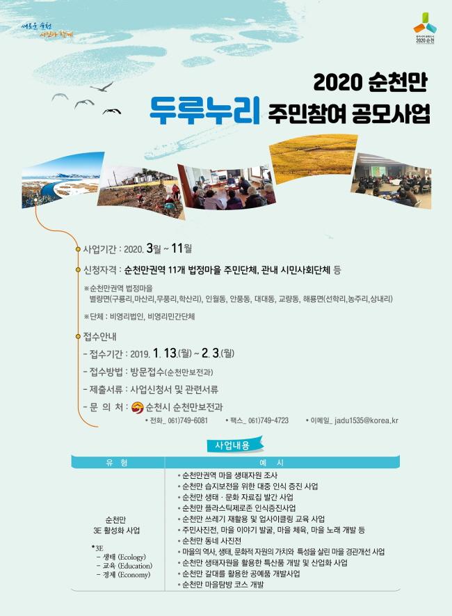 ½ÅûÀ» ¿øÇÏ´Â ¼øÃµ¸¸±Ç¿ª Áֹΰú Áö¿ª ½Ã¹Î´Üü´Â ¼øÃµ½Ã ȨÆäÀÌÁö¿¡¼ ½Åû¼¸¦ ³»·Á ¹Þ¾Æ »ç¾÷³»¿ëÀ» ÀÛ¼ºÇØ 2¿ù 3ÀÏ(¿ù) ±îÁö ¼øÃµ½Ã ¼øÃµ¸¸º¸Àü°ú·Î Á¦ÃâÇÏ°í °èȹ¼ ÀÛ¼º¿¡ ´ëÇÑ ±Ã±ÝÁõÀ̳ª ÄÁ¼³ÆÃÀ» ¿øÇÏ´Â ´ÜüÀÇ °æ¿ì ¼øÃµ¸¸º¸Àü°ú(061-749-6081)·Î Àüȳª ¹æ¹® ½Ã ¾ðÁ¦µç »ó´ã ¹ÞÀ» ¼ö ÀÖ´Ù.