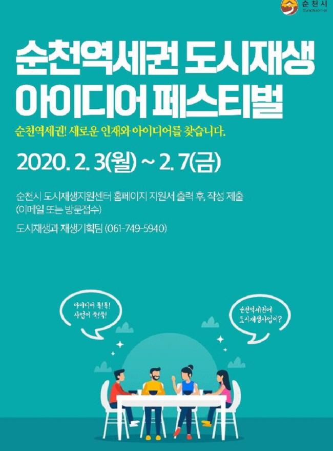 [È£³²´º½º¶óÀÎ = ¼ÀºÈ« ±âÀÚ] ¼øÃµ½Ã´Â ¼øÃµ¿ª¼¼±Ç µµ½ÃÀç»ý ÃßÁøÀ» À§ÇÑ ¡®¾ÆÀ̵ð¾î Æä½ºÆ¼¹ú¡¯ Âü°¡ÀÚ¸¦ 2¿ù 7ÀϱîÁö °ø°³¸ðÁýÇÑ´Ù°í ¹àÇû´Ù.