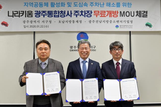 [È£³²´º½º¶óÀÎ = ¼ÀºÈ« ±âÀÚ] ±¤Áֽà ¼±¸´Â Áö³ 22ÀÏ ¼±¸Ã» 3Ãþ ±¸Ã»Àå½Ç¿¡¼ È£³²Áö¹æÅë°èû ¹× ±¤ÁÖÀü³²Áö¹æÁß¼Òº¥Ã³±â¾÷û°ú ¡®³ª¶óŰ¿ò ±¤ÁÖÅëÇÕû»ç ÁÖÂ÷Àå ¹«·á°³¹æ Çù¾à¡¯À» ü°áÇß´Ù.