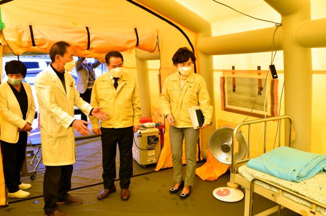 ÀÌ¾î ¼±º°Áø·á¼Ò¸¦ ¹æ¹®ÇØ »óȲ°ú ¿î¿µ»çÇ× Á¡°Ë¿¡ ³ª¼± ÃÖ ±º¼ö´Â ¡°ÇöÀç È®»ê Ãß¼¼·Î º¼ ¶§ ´ã¾ç±º¿¡¼ÀÇ È¯Àڹ߻ý °¡´É¼º¿¡ ´ëÇØ¼µµ öÀúÈ÷ ´ëºñÇØ¾ß ÇÑ´Ù¸ç, ¼±º°Áø·á¼Ò ¿î¿µ¿¡ ÇÑÄ¡ÀÇ ¼ÒȦÇÔÀÌ ¾øµµ·Ï ÃÖ¼±À» ´ÙÇØÁÖ±æ ¹Ù¶õ´Ù¡±°í ¸»Çß´Ù.