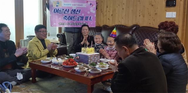 ƯÈ÷, ¸¶À» ¾î¸£½ÅÀÇ »ý½ÅÀ» ÃàÇÏÇϱâ À§ÇØ ÆòÃ̸¶À» ºÎ³àȸ(ȸÀå ¹éÇàÀÚ)¿¡¼ Á÷Á¢ ÁغñÇÑ Á¤¼º½º·¯¿î À½½ÄÀ¸·Î »ý½Å»ó¿¡ µû¶æÇÔÀ» ´õÇß´Ù. À̳¯ »ýÀÏ»óÀ» ¹ÞÀº Á¶ ¸ð ¾î¸£½ÅÀº "³ªÀ̰¡ µé¼ö·Ï »ýÀÏ ÃàÇϸ¦ ¹Þ´Â´Ù´Â »ý°¢À» ÀØ°í »ì¾Ò´Âµ¥ ¶æ¹ÛÀÇ ¼±¹°À» ¹Þ¾Æ ³Ê¹« ±â»Ú´Ù. ¼ÒÁßÇÑ Ãß¾ïÀ» ¼±¹°ÇØÁ༠°¨»çÇÏ´Ù"°í ±â»Û ¸¶À½À» ÀüÇß´Ù.