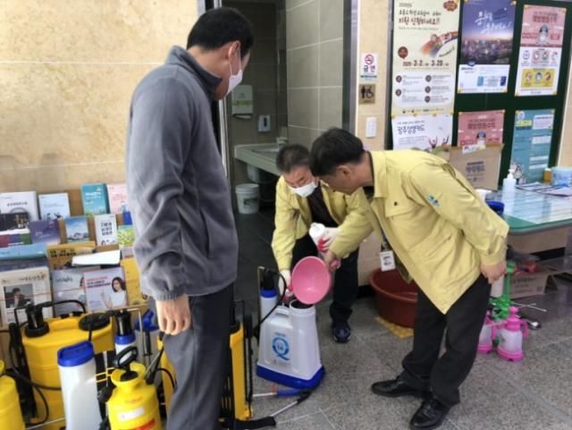 [È£³²´º½º¶óÀÎ = ¼ÀºÈ« ±âÀÚ] ±¤Áֽà ³²±¸(±¸Ã»Àå ±èº´³»)´Â Äڷγª¹ÙÀÌ·¯½º °¨¿°Áõ È®»êÀ» Â÷´ÜÇϰí, ÁֹεéÀÇ °³ÀÎ À§»ý°ü¸®¸¦ À§ÇØ °ü³» 16°³µ¿ ÇàÁ¤º¹Áö¼¾ÅÍ¿¡¼ »ì±Õ.¼Òµ¶Á¦ ¹× ÈÞ´ë¿ë ¹æ¿ª±â µî ¼Òµ¶ ¾àǰÀ» Á¦°øÇϱâ·Î Çß´Ù.