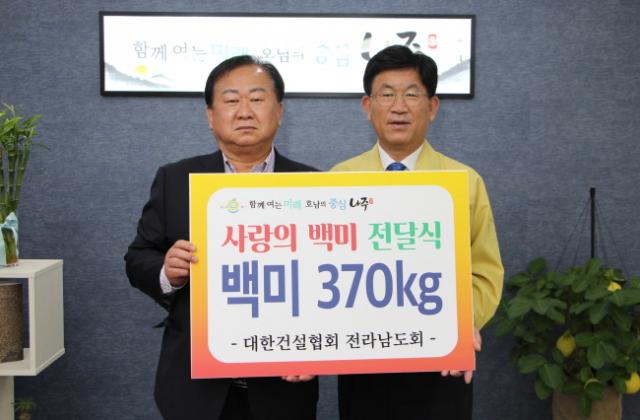 [È£³²´º½º¶óÀÎ = ¼ÀºÈ« ±âÀÚ] ³ªÁֽô ´ëÇÑÀü¹®°Ç¼³Çùȸ Àü¶ó³²µµÈ¸(ȸÀå ¿ÀÁ¾¼ø)¿¡¼ ¼Ò¿Ü°èÃþÀ» À§ÇÑ »ç¶ûÀÇ ¹é¹Ì(ÃÑ370kg)¸¦ ±âÅ¹ÇØ¿Ô´Ù°í 5ÀÏ ¹àÇû´Ù.