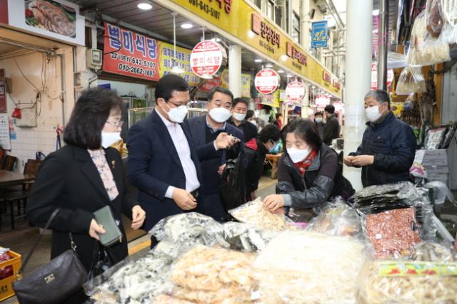 ¿©¼ö ¼½ÃÀåÀ» ¹æ¹®ÇÑ ÀÇ¿øµéÀº À̳¯ »óÀεéÀ» ¸¸³ª °íÃæÀ» µè±â À§ÇØ °£´ãȸ¸¦ °®°í »ó°¡¸¦ µ¹¸ç Àç·¡½ÃÀå ¼ÒºñÃËÁøÀ» À§ÇÑ À庸±â Çà»ç¸¦ ÆîÃÆ´Ù.
