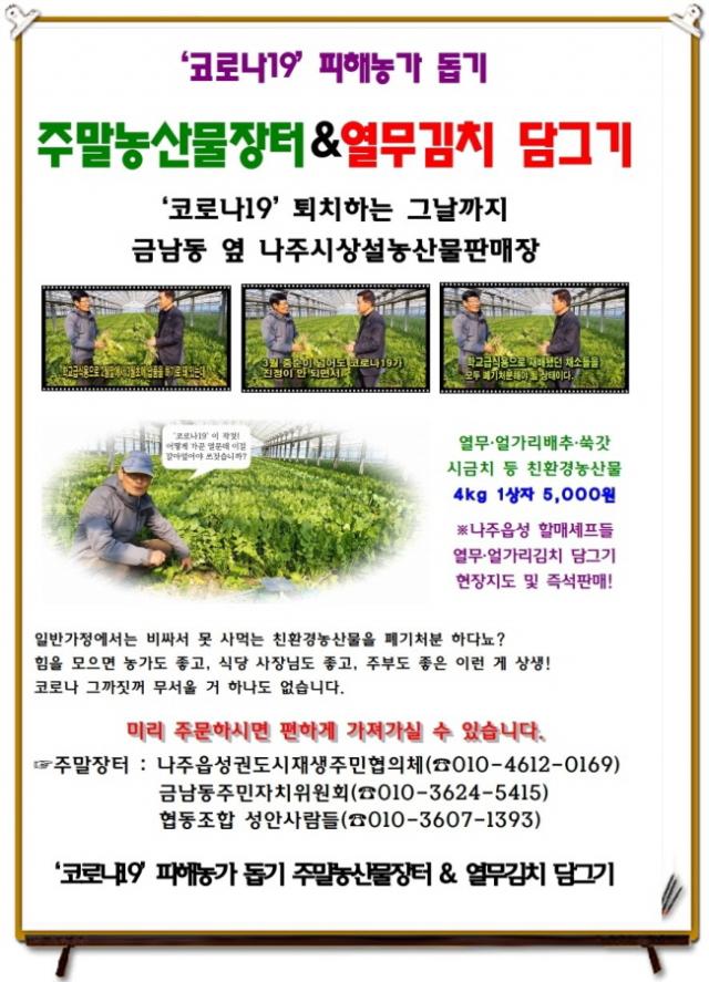 ³ªÁֽÿ¡ µû¸£¸é 21ÀÏ Åä¿äÀÏ ¿ÀÀü 10½ÃºÎÅÍ ±Ý³²µ¿ »ó¼³³ó»ê¹°ÆÇ¸ÅÀå(Á¤¼ö·ç ¿·)¿¡¼ ¡®Äڷγª19 ÇÇÇØ³ó°¡ µ½±â ÁÖ¸»³ó»ê¹°ÀåÅÍ&¿¹«±èÄ¡ ´ã±×±â¡¯ Çà»ç°¡ ¿¸°´Ù.