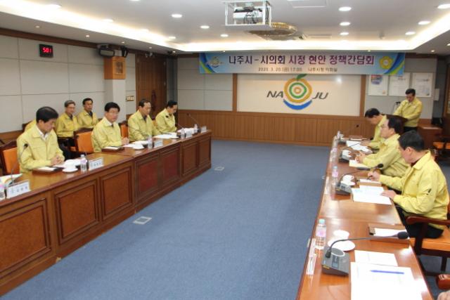 [È£³²´º½º¶óÀÎ = ¼ÀºÈ« ±âÀÚ] ³ªÁÖ½Ã(½ÃÀå °ÀαÔ)´Â 20ÀÏ ¿ÀÈÄ 5½Ã ½Ãû ÀÌȽǿ¡¼ ½ÃÀÇȸ(ÀÇÀå ±è¼±¿ë)¿Í ½ÃÁ¤ ÁÖ¿ä Çö¾È¿¡ ´ëÇÑ Á¤Ã¥ °£´ãȸ¸¦ °®°í ½Ã¹Î Çູ°ú Áö¿ª¹ßÀüÀ» À§ÇÑ »óÈ£ Çù·Â ¹æ¾ÈÀ» ³íÀÇÇß´Ù.