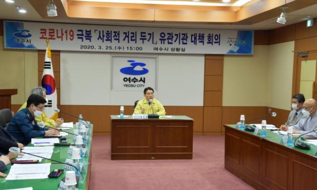 ¿©¼ö½Ã¿¡ µû¸£¸é 25ÀÏ ¿ÀÈÄ 3½Ã ½Ãû »óȲ½Ç¿¡¼ 14°³ À¯°ü±â°ü, ´Üü?Çùȸ°¡ Âü¿©ÇÑ °¡¿îµ¥ »çȸÀû °Å¸®µÎ±â¸¦ ÅëÇÑ °¨¿°º´ Â÷´Ü°ú Áý´Ü°¨¿° ¿ì·Á ½Ã¼³ Á¡°Ë, À¯°ü±â°ü °£ Çù·Â ¹æ¾ÈÀ» ÁýÁß ³íÀÇÇß´Ù.