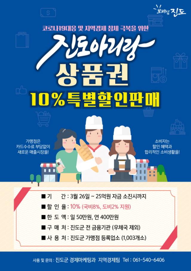 [È£³²´º½º¶óÀÎ = ¼ÀºÈ« ±âÀÚ] Áøµµ±ºÀÌ Áö³ 26ÀϺÎÅÍ 3°³¿ù µ¿¾È Äڷγª19·Î ħüµÈ Áö¿ª°æÁ¦¸¦ »ì¸®±â À§ÇØ 25¾ï¿øÀÇ Áøµµ ¾Æ¸®¶û »óǰ±ÇÀ» 10%·Î ÇÒÀÎµÈ °¡°Ý¿¡ ÆÇ¸ÅÇÑ´Ù.