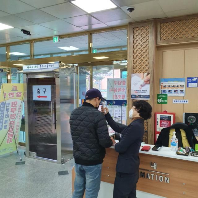Áö³ 12ÀÏ ¹Î¿øÀÎ µî ¿ÜºÎ ¹æ¹®°´ÀÌ ¼ö½Ã·Î µå³ªµå´Â ±ºÃ»»ç Áß¾ÓÇö°ü°ú ¹Î¿ø½Ç ÀÔ±¸¿¡ ´ëÀμҵ¶±â¸¦ ¼³Ä¡Çѵ¥ À̾î, Áß¾ÓÇö°ü¿¡ ¿È»óÄ«¸Þ¶ó¸¦ ¼³Ä¡ÇÏ¿© ¸ðµç ³»¹æ°´µéÀ» ´ë»óÀ¸·Î ü¿ÂÀ» ÃøÁ¤Çϰí, ¹æ¸í·Ï ÀÛ¼º µî Äڷγª 19 °¨¿°º´ À¯ÀÔ Â÷´ÜÀ» À§ÇØ ¹ß¹þ°í ³ª¼¹´Ù.