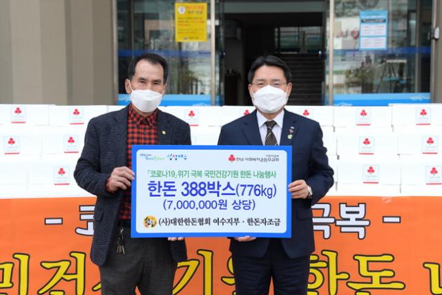 [È£³²´º½º¶óÀÎ = ¼ÀºÈ« ±âÀÚ] Çѵ·Çùȸ ¿©¼ö½ÃÁöȸ(ȸÀå ±èÀ±°ï)´Â Áö³´Þ 30ÀÏ ¿©¼ö½Ãû¿¡¼ Äڷγª19 À§±â ±Øº¹À» À§ÇÑ ±¹¹Î°Ç°±â¿ø Çѵ·³ª´®Çà»ç¸¦ ÅëÇØ 7¹é¸¸ ¿ø »ó´çÀÇ Çѵ· 388¹Ú½º¸¦ ¿©¼ö½Ã(½ÃÀå ±Ç¿ÀºÀ)¿¡ Àü´ÞÇß´Ù.