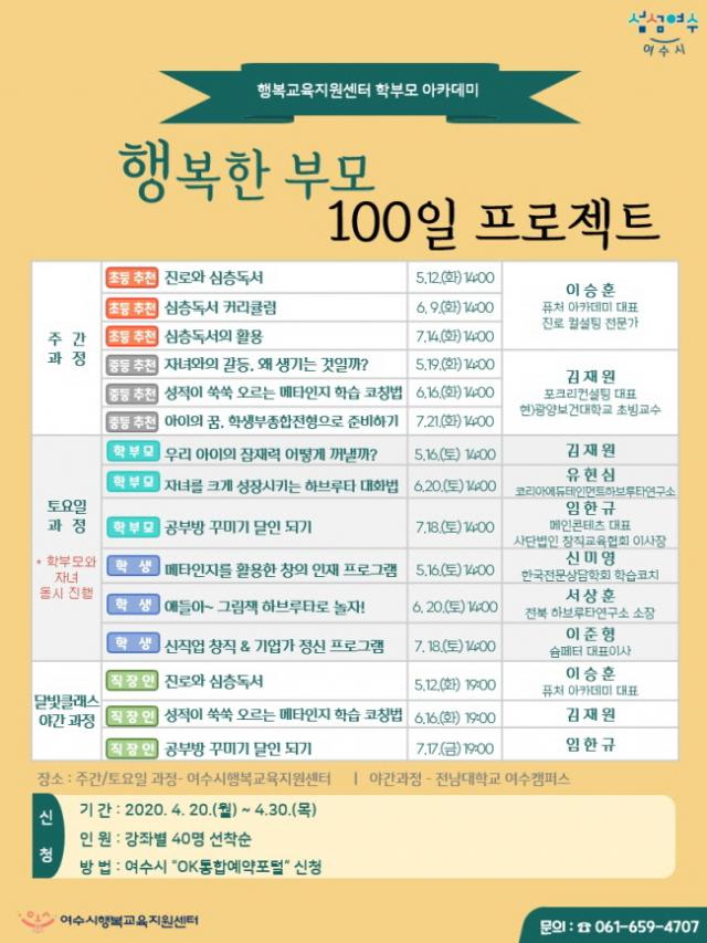 [È£³²´º½º¶óÀÎ = ¼ÀºÈ« ±âÀÚ] ¿©¼ö½Ã(½ÃÀå ±Ç¿ÀºÀ)´Â ¿À´Â 20ÀϺÎÅÍ 30ÀϱîÁö ¡®ÇູÇÑ ºÎ¸ð, 100ÀÏ ÇÁ·ÎÁ§Æ®¡¯¸¦ ÁÖÁ¦·Î 2020³âµµ ÇÐºÎ¸ð ¾ÆÄ«µ¥¹Ì ¼ö°»ýÀ» ¸ðÁýÇÑ´Ù.