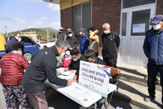 ´çÃÊ »óÇϹݱ⠰¢ 30¸¸¿ø¾¿ Áö±Þ ¿¹Á¤À̾ú´ø ³ó¾î¹Î °øÀͼö´çÀº Äڷγª19·Î ħüµÈ Áö¿ª°æÁ¦ Ȱ¼ºÈ¸¦ À§ÇØ 4¿ù ¸»±îÁö 60¸¸¿øÀ» Àü¾× Áö±ÞÇϱâ·Î °áÁ¤Çß´Ù.