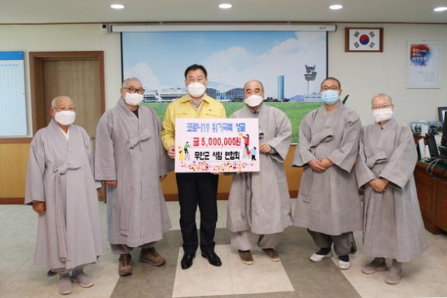 [È£³²´º½º¶óÀÎ = ¼ÀºÈ« ±âÀÚ] ¹«¾È±º ºÒ±³»ç¾Ï ¿¬ÇÕȸ(ȸÀå ¹ý»ê)´Â Áö³ 27ÀÏ ¹«¾È±ºÃ»À» ¹æ¹®ÇÏ¿© Äڷγª19 À§±â·Î ¾î·Á¿òÀ» °Þ°í ÀÖ´Â ÀÌ¿ôµéÀ» À§ÇØ »ç¿ëÇØ ´Þ¶ó¸ç ¼º±Ý 500¸¸¿øÀ» ±âºÎÇß´Ù.