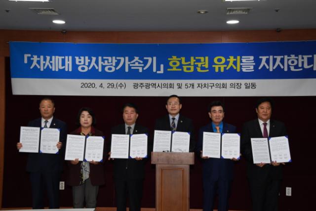 ±¤ÁÖ½ÃÀÇȸ ±èµ¿Âù ÀÇÀå°ú 5°³ ÀÚÄ¡±¸ ÀÇȸ ÀÇÀå(µ¿±¸ÀÇȸ ¹ÚÁ¾±Õ, ¼±¸ÀÇȸ °±â¼®, ³²±¸ÀÇȸ Á¶±âÁÖ, ºÏ±¸ÀÇȸ °íÁ¡·Ê, ±¤»ê±¸ÀÇȸ ¹èÈ«¼®)Àº 29ÀÏ, ¡®4¼¼´ë ¿øÇü ¹æ»ç±¤°¡¼Ó±â¡¯ÀÇ È£³²±Ç À¯Ä¡¸¦ ÁöÁöÇÏ´Â ¼º¸íÀ» ¹ßÇ¥Çß´Ù.