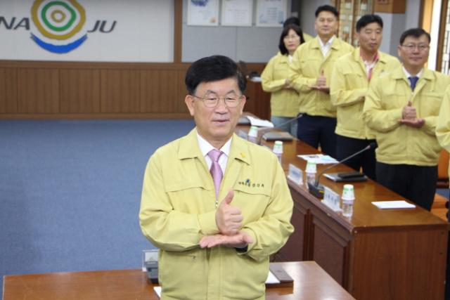 [È£³²´º½º¶óÀÎ = ¼ÀºÈ« ±âÀÚ] °ÀÎ±Ô ³ªÁÖ½ÃÀåÀº 1ÀÏ ½Ãû °ø¹«¿øµé°ú ÇÔ²² ¡®´öºÐ¿¡ 縰Áö¡¯¿¡ µ¿ÂüÇÏ°í ½ÅÁ¾ Äڷγª¹ÙÀÌ¶ó½º °¨¿°Áõ(Äڷγª19) Àϼ± ÇöÀå¿¡¼ »çÅõ¸¦ ¹úÀÌ´Â ÀÇ·áÁø¿¡°Ô °¨»çÀÇ ¸Þ½ÃÁö¸¦ Àü´ÞÇß´Ù.
