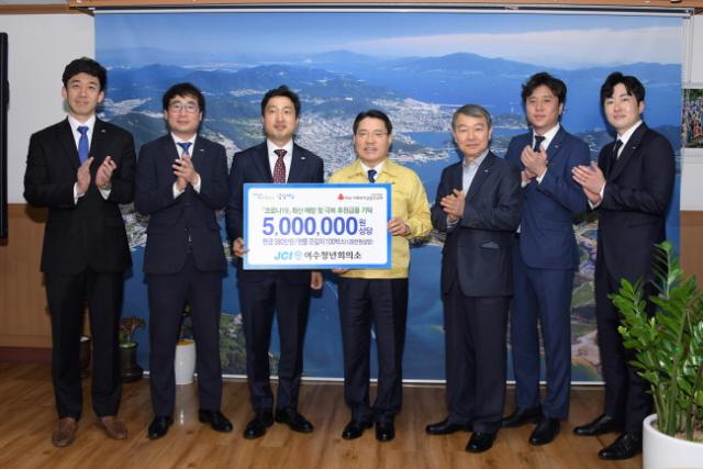 Áö³ 11ÀÏ ¿©¼öû³âȸÀÇ¼Ò ÀÌÁ¤Ã¶ ȸÀåÀÌ ¿©¼ö½ÃûÀ» ¹æ¹®ÇØ ±Ç¿ÀºÀ ¿©¼ö½ÃÀå¿¡°Ô ÈÄ¿ø±Ý 380¸¸¿ø°ú 120¸¸¿ø »ó´çÀÇ °«±èÄ¡ 100¹Ú½º(1.3§¸) ÈÄ¿øÁõ¼¸¦ Àü´ÞÇß´Ù.