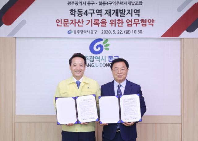 [È£³²´º½º¶óÀÎ = ¼ÀºÈ« ±âÀÚ] ±¤Áֽà µ¿±¸(ûÀå ÀÓÅÃ)°¡ Çе¿4±¸¿ªÀç°³¹ßÁö¿ªÀÇ Àι®ÀÚ»êÀÇ ±â·Ï°ú º¸Á¸À» À§ÇØ Çе¿4±¸¿ªÁÖÅÃÀç°³¹ßÁ¤ºñ»ç¾÷Á¶ÇÕ°ú ¾÷¹«Çù¾àÀ» ü°áÇß´Ù°í 22ÀÏ ¹àÇû´Ù.