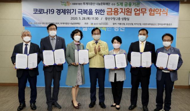 28ÀÏ ±¤»ê°æÁ¦¹é½ÅȸÀÇÀÇ ÁÖÀç·Î Åõ°Ô´õ±¤»ê ³ª´®¹®ÈÀç´Ü°ú 5°³ Áö¿ª ±ÝÀ¶±â°üÀÎ ¼±¤ÁÖ»õ¸¶À»±Ý°í¡¤ÇѸ¶À½»õ¸¶À»±Ý°í¡¤¾î·æ½ÅÇù¡¤¿ì»ê½ÅÇù¡¤ºñ¾Æ½ÅÇùÀÌ ±¤»ê±¸Ã»¿¡¼ ¡®Äڷγª19 ±Øº¹ ±ÝÀ¶Áö¿ø ¾÷¹«Çù¾à¡¯À» ü°áÇß´Ù.