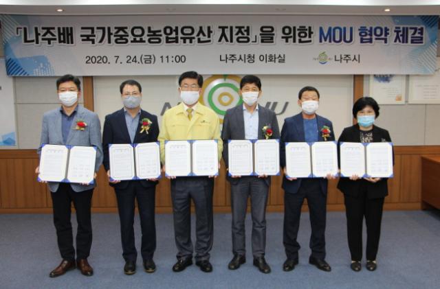 ³ªÁֽô ¾Õ¼ Áö³ 6¿ù 30ÀÏ ³ó¸²Ãà»ê½ÄǰºÎ¿¡ ¡®³ªÁֹ衯 ±¹°¡Áß¿ä³ó¾÷À¯»ê ÁöÁ¤À» ½ÅûÇÏ°í ³ó¾÷À¯»êÀÚ¹®À§¿øÈ¸ ȸÀÇ, ÇöÀåÁ¶»ç µî ÁöÁ¤ ÀýÂ÷ Áغñ¿¡ º»°Ý Âø¼öÇß´Ù. ¶Ç À̹ø Çù¾àÀ» ÅëÇØ 5°³ ±â°ü°ú ³ªÁÖ¹è ±¹°¡Áß¿ä³ó¾÷À¯»ê ÁöÁ¤À» À§ÇÑ ¿¬±¸, ÀÚ·á °øÀ¯, º¸Àü°ü¸®, Ȱ¿ë»ç¾÷, È«º¸ ºÐ¾ß »óÈ£ °øÁ¶¸¦ °ÈÇØ°¡±â·Î Çß´Ù.