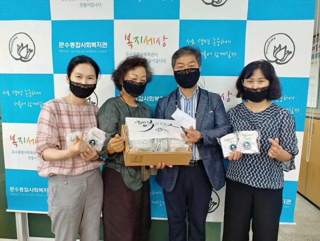 ÇÑÆí, ¹®¼öµ¿Áֹμ¾ÅÍ´Â ±âºÎ¹ÞÀº õ¸¶½ºÅ© 50ÀåÀ» ¹®¼öÁ¾ÇÕ»çȸº¹Áö°üÀ» ÅëÇØ ¿©¼ö½Ã ³²¸é Ãë¾à°èÃþ ¾î¸£½Åµé¿¡°Ô ¹èºÎÇÒ °èȹÀÌ´Ù.