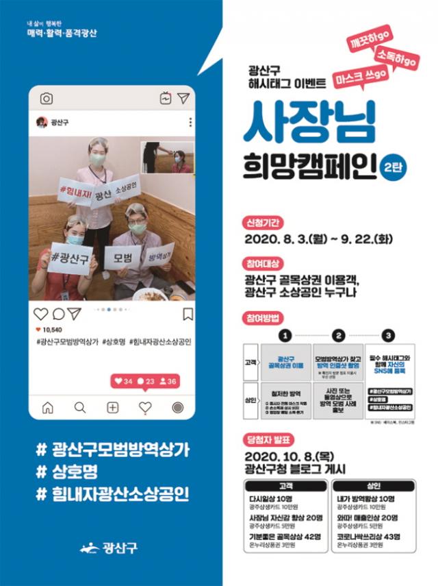 [È£³²´º½º¶óÀÎ = ¼ÀºÈ« ±âÀÚ] ±¤Áֽà ±¤»ê±¸(±¸Ã»Àå ±è»ïÈ£)°¡ Äڷγª19 Áö¿ª»çȸ Àç È®»êÀ¸·Î À§ÃàµÈ °ñ¸ñ»ó±ÇÀÇ È°¼ºÈ¿Í ½Ã¹ÎÀÇ °ñ¸ñ»óÁ¡ ¾È½É ÀÌ¿ëÀ» À§ÇØ ¡®»çÀå´Ô Èñ¸Á Ä·ÆäÀΡ¯ 2źÀ¸·Î ¡®¸ð¹ü ¹æ¿ª »ó°¡ ã±â¡¯¸¦ ´ÙÀ½´Þ 22ÀϱîÁö ½Ç½ÃÇÑ´Ù.