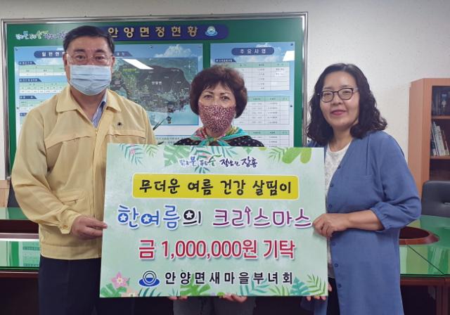¾È¾ç¸éÇàÁ¤º¹Áö¼¾ÅÍ¿¡¼ ¿¸° À̳¯ ±âŹ½Ä¿¡´Â ¾È¾ç¸é¹ø¿µÈ¸¿Í »õ¸¶À»ºÎ³àȸ°¡ ÇÔ²²Çß´Ù. ¾È¾ç¸é¹ø¿µÈ¸(ȸÀå À¯Àç¸í)¿Í »õ¸¶À»ºÎ³àȸ(ȸÀå ¹Ú½ÅÀÚ)´Â ¿©¸§³» Äڷγª19·Î ¿ÜÃâ ¹× ¸ðÀÓÀÌ ¸ðµÎ ¾î·Á¿î ½Ã±âÀÓÀ¸·Î Áö¿ª ³» ¾î¸£½ÅµéÀÇ °Ç°À§¹®À» À§ÇØ »ç¿ëÇØ ´Þ¶ó¸ç °¢°¢ 150¸¸¿ø, 100¸¸¿øÀÇ ¼º±ÝÀ» ±âŹÇß´Ù.