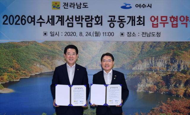 ¿©¼ö½Ã´Â 24ÀÏ Àü¶ó³²µµ¿Í Àü³²µµÃ» VIP½Ç¿¡¼ 2026¿©¼ö¼¼°è¼¶¹Ú¶÷ȸÀÇ ¼º°øÀû ÃßÁø À» À§ÇÑ °øµ¿°³ÃÖ ¾÷¹«Çù¾àÀ» ü°áÇß´Ù°í ¹àÇû´Ù.