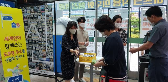 [È£³²´º½º¶óÀÎ = ¼ÀºÈ« ±âÀÚ] ±¤ÁÖ ±¤»ê±¸(±¸Ã»Àå ±è»ïÈ£)°¡ Äڷγª19 È®»ê ¹æÁö¿Í µµ·Î¸íÁÖ¼Ò È«º¸¸¦ À§ÇØ ¸¶½ºÅ© ¸ñ°ÉÀÌ 5,000°³¸¦ Á¦ÀÛÇØ 2ÀϺÎÅÍ ±¸Ã» ÀÔ±¸ µî¿¡¼ ½Ã¹Îµé¿¡°Ô ³ª´²ÁÖ°í ÀÖ´Ù.