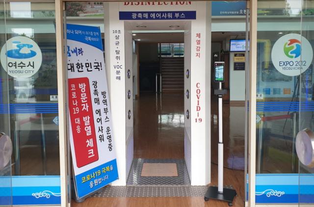 [È£³²´º½º¶óÀÎ = ¼ÀºÈ« ±âÀÚ] ¿©¼ö½Ã(½ÃÀå ±Ç¿ÀºÀ)°¡ Äڷγª19 °¨¿° Â÷´ÜÀ» À§ÇØ ¿©¼ö½Ãû º»Ã»»ç Áß¾ÓÇö°ü¿¡ ¡®Äڷγª19 ´ëÀÀ ¹æ¿ªºÎ½º¡¯¸¦ ¼³Ä¡Çß´Ù°í 14ÀÏ ¹àÇû´Ù.