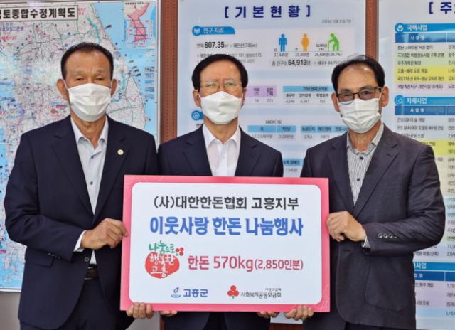 °íÈﱺ °ü°èÀÚ´Â ¡°¾î·Á¿î ¿©°Ç ¼Ó¿¡¼µµ ÀØÁö ¾Ê°í ³ª´®À» ½ÇÃµÇØ ÁֽŠÇѵ·Çùȸ °íÈï ÁöºÎ °ü°èÀںе鲲 °¨»ç µå¸°´Ù¡±¸ç ¡°µû¶æÇÑ ¸¶À½ÀÌ Àß Àü´ÞµÇµµ·Ï Çϰڴ١±°í ¸»Çß´Ù. °íÈﱺÀº ±âŹ ¹ÞÀº Çѵ·À» ³ëÀκ¹Áö½Ã¼³ 30°³¼Ò, ¾Æµ¿º¹Áö½Ã¼³ 19°³¼Ò ¹× Ãë¾à°èÃþ 70°¡Á¤¿¡ Àü´ÞÇß´Ù.