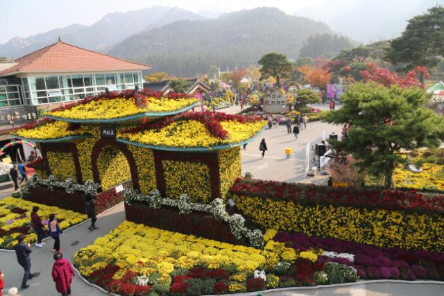 ±¹È ºÐÈ 27Á¾, 24¸¸¿©Á¡À» Àü½ÃÇÏ¿© »öä °¡µæÇÑ µ¿½ÉÀÌ ²Þ²Ù´Â °¡À»¼Òdz ÄÁ¼ÁÀÇ Àü½Ã¿¬Ãâ·Î ±¹ÈÁ¶Çü¹°°ú Æ÷ÅäÁ¸À» ´Ù¾çÇÏ°Ô Á¶¼ºÇÏ¿© ±¹ÈÀÛǰ Àü½Ã°ø°£À» È®´ëÇÏ´Â ÇÑÆí ¹æ¹®°´ ¸ÂÃãÇü ¹®È¡¤Ã¼ÇèÇà»ç¸¦ ÁøÇàÇÏ¿© ¹æ¹®°´ 90¸¸¸íÀÌ ´Ù³à°¬À¸¸ç 1¾ï5õ¸¸¿øÀÇ ¿¹»êÀý°¨°ú 2¾ï5õ¸¸¿øÀÇ ³ó°¡¼ÒµæÀ» âÃâÇÑ ¹Ù ÀÖ´Ù.