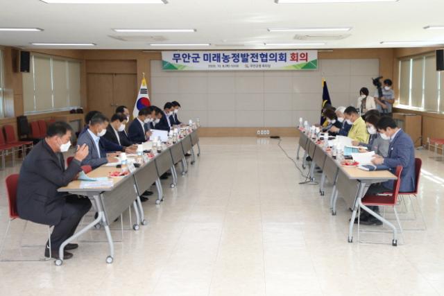 À̳¯ ÇùÀÇȸ´Â ¹«¾È±º ¹Ì·¡³ó¾÷ ¹ßÀü°ú Áö¼Ó°¡´ÉÇÑ ³óÁ¤Çõ½ÅÀ» ÀÌ·ï ³ó¾î¾÷ÀÎÀÇ ¼ÒµæÃ¢Ãâ ¹æ¾ÈÀ» °øµ¿¸ð»öÇϱâ À§ÇÑ ÀÚ¸®·Î, ±è»ê ±º¼ö¸¦ ºñ·ÔÇÑ ³ó․¼ö․ÃàÇùÀå, »ê¸²Á¶ÇÕÀå, °ü°è°ø¹«¿ø µî 20¿©¸íÀÌ Âü¼®ÇØ ³óÁ¤Çö¾È°ú °¢ ±â°üº° Çù·Â»ç¾÷ µîÀ» ³íÀÇÇß´Ù.
