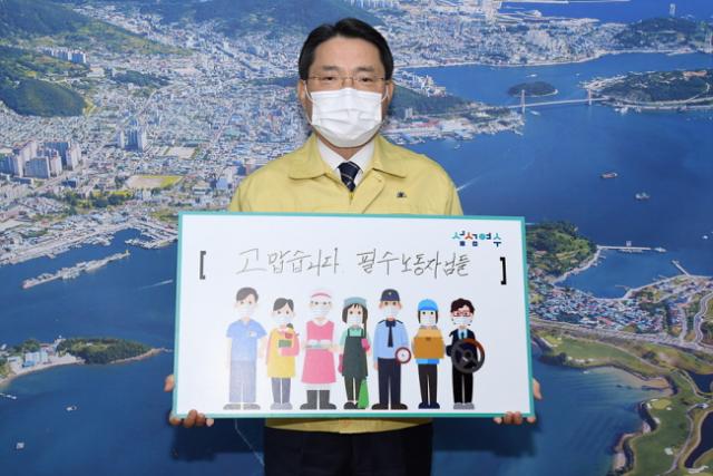 ±Ç ½ÃÀåÀº ¡°Äڷγª19 ÀÇ·áÇöÀå ÃÖÀü¼±À» ÁöŰ°í °è½Å ÀÇ·áÁ¾»çÀÚ, ³ëÀÎ ¹× ¾ÆÀÌ µ¹º½Á¾»çÀÚ, ¿ì¸®ÀÇ ÀÏÅÍ¿Í »îÀ» ÁöÄÑÁֽô û¼Ò¹ÌÈ¿ø, Ãß¼®¿¬ÈÞ ±ÞÁõÇÑ ¿î¼ö¹°·®À» °¨´çÇϽŠÅùèÁ¾»çÀÚ¡¦ À̺еéÀÌ ¸ðµÎ Äڷγª19·Î À§Çù¹Þ´Â ¿ì¸®ÀÇ ÀÏ»óÀ» ÁöÄÑÁֽô °í¸¶¿î ºÐµéÀÌ´Ù¡±¸é¼ °¨»çÀÇ ¸¶À½À» Ç¥Çß´Ù.