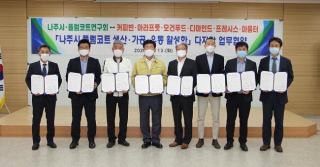 ³ªÁÖ½Ã(½ÃÀå °ÀαÔ)´Â Áö³ 13ÀÏ ³ó¾÷±â¼ú¼¾ÅÍ¿¡¼ ³ªÁÖ½ÃÇ÷³ÄÚÆ®¿¬±¸È¸, ÁÖ½Äȸ»ç Ä¿ÇǺóÄÚ¸®¾Æ, ¾Æ¶óÇÁ·í, ¸ð°ÇǪµå, µð¸¶Àεå, ÇÁ·¹½Ã½º, ¾Æ¸§ÅÍ¿Í Ç÷³ÄÚÆ® ¼Òºñ Ȱ¼ºÈ¸¦ À§ÇÑ ´ÙÀÚ°£ ¾÷¹«Çù¾àÀ» ü°áÇß´Ù°í 14ÀÏ ¹àÇû´Ù.
