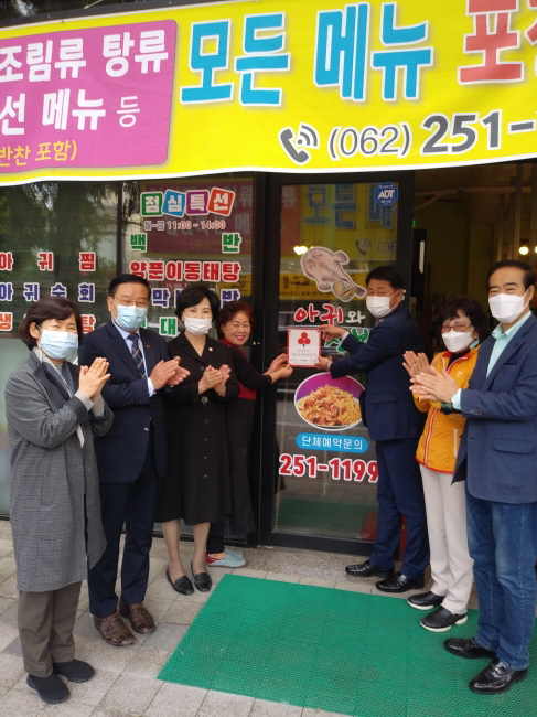 [È£³²´º½º¶óÀÎ = ¼ÀºÈ« ±âÀÚ] ±¤Áֽà µ¿±¸(ûÀå ÀÓÅÃ) »ê¼ö1µ¿ Áö¿ª»çȸº¸ÀåÇùÀÇü(À§¿øÀå ±è¼ö¿µ)´Â Áö³ 13ÀÏ ½Å±Ô ÂøÇѰ¡°Ô 11È£Á¡À¸·Î ¼±Á¤µÈ ¡®¾Æ±Í¿Í Àüº¹(´ëÇ¥ Àֿ̽Á)¡¯¿¡ ¡®ÂøÇѰ¡°Ô¡¯ ÇöÆÇÀ» Àü´ÞÇÏ°í °¨»çÀÇ ¶æÀ» ÀüÇß´Ù.