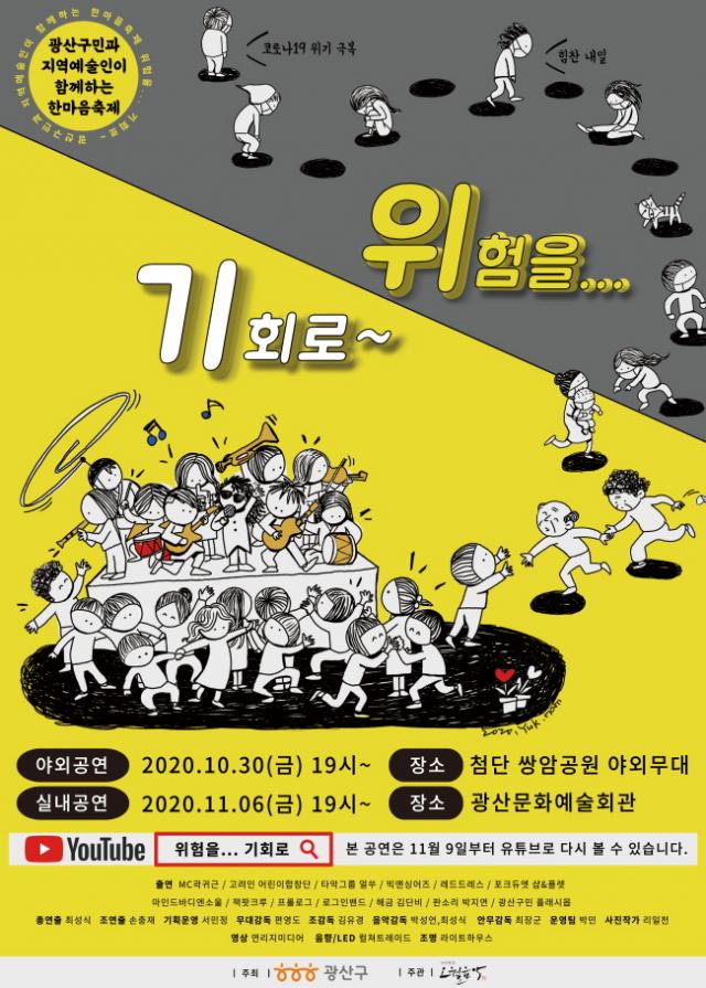À̹ø °ø¿¬Àº, Äڷγª19·Î Ȱµ¿ÀÌ ÁÙ¾îµç ¹®È¿¹¼úÀεéÀÇ Ã¢ÀÛ¡¤¹ßÇ¥¸¦ Áö¿øÇϰí, ½Ã¹Î¿¡°Ô À§·Î¿Í ¹®È¿¹¼ú ÇâÀ¯ ±âȸ¸¦ Á¦°øÇϱâ À§ÇÑ °Í. ±¤»ê±¸´Â °ø¿¬ ½ÇȲÀ» ±¤»ê±¸ À¯Æ©ºê ä³Î¿¡µµ ¿Ã·Á ´õ ¸¹Àº ½Ã¹ÎµéÀÌ º¼ ¼ö ÀÖµµ·Ï ÇÒ ¿¹Á¤ÀÌ´Ù.