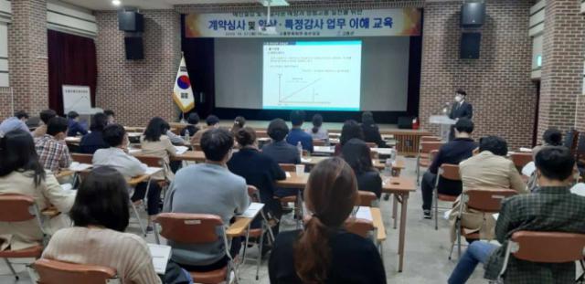 »ç)Çѱ¹°Ç¼³À¶ÇÕ¿¬±¸¿øÀå Á¤±ââ °øÇйڻ縦 ÃʺùÇØ ¡°°è¾à½É»ç¿¡ µû¸¥ ¿ø°¡°è»ê ¹æ¹ý¡± ±³À°À¸·Î °ø°ø°è¾àÀÇ Æ¯¼º°ú ü°è, °ø»ç¿ø°¡ ±¸¼º ÀÌÇØ, °è¾à±Ý¾× Á¶Á¤ ½Ç¹« ¼øÀ¸·Î °ÀÇÇß´Ù.