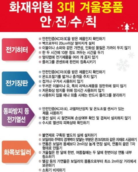 [È£³²´º½º¶óÀÎ = ¼ÀºÈ« ±âÀÚ] º¸¼º¼Ò¹æ¼(¼Àå Á¤´ë¿ø)´Â À߸øµÈ °Ü¿ï¿ëǰÀÇ »ç¿ëÀ¸·Î ÀÎÇÑ ÈÀç ¹ß»ýÀ» ¿¹¹æÇϰíÀÚ 3´ë °Ü¿ï¿ëǰÀÎ ¡®Àü±âÈ÷ÅÍ¡¤ÀåÆÇ, Àü±â¿¼±, ȸñº¸ÀÏ·¯¡¯ÀÇ ¾ÈÀüÇÑ »ç¿ëÀ» ´çºÎÇß´Ù.