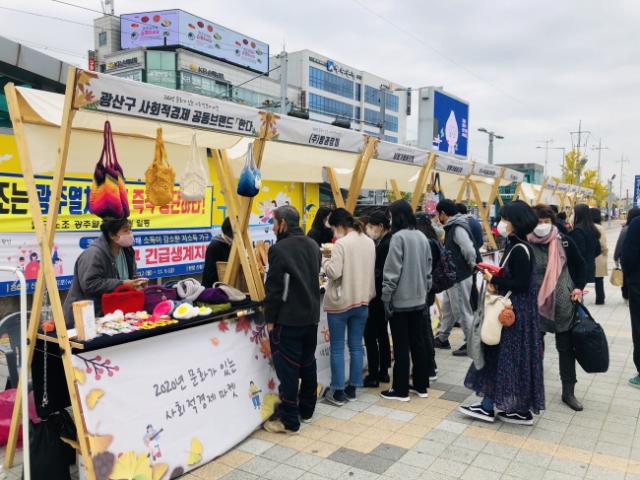 6ȸ¸¦ ¸ÂÀº À̹ø Çà»ç¿¡´Â, Äڷγª19·Î ¾î·Á¿òÀ» °ÞÀº ±¤»ê±¸ »çȸÀû°æÁ¦±â¾÷ 11°÷ÀÌ Âü¿©ÇØ ¼ö°ø¿¹Ç°°ú ¸Ô°Å¸® µî ´Ù¾çÇÑ Á¦Ç°µéÀ» ¼±º¸¿´´Ù. ¾Æ¿ï·¯ ±âÂ÷ µµÂø ½Ã°£¿¡ ¸ÂÃç ÆËÆä¶ó, ¹öºí °ø¿¬ µîµµ ¿·Á ½Ã¹ÎµéÀÇ ´«±æÀ» ²ø¾ú´Ù.