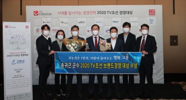[È£³²´º½º¶óÀÎ = ¼ÀºÈ« ±âÀÚ] °íÈﱺ(¼Û±Í±Ù ±º¼ö)Àº 10ÀÏ, ¼¿ï¿¡ À§Ä¡ÇÑ ´õ ÇöóÀÚÈ£ÅÚ¿¡¼ TVÁ¶¼±ÀÌ ÁÖÃÖÇÏ°í »ê¾÷ÅëÀåÀÚ¿øºÎ µî 8°³ ºÎó°¡ °øµ¿ ÈÄ¿øÇÑ¡¸2020 °æ¿µ´ë»ó¡¹¿¡¼ ¼Û±Í±Ù ±º¼ö°¡ ¡®ºê·£µå °æ¿µ¡¯ ºÎ¹® ´ë»óÀ» ¼ö»óÇß´Ù°í ¹àÇû´Ù.