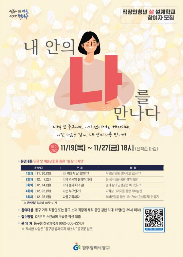 [È£³²´º½º¶óÀÎ = ¼ÀºÈ« ±âÀÚ] ±¤ÁÖ µ¿±¸(ûÀå ÀÓÅÃ)´Â Á÷ÀåÀ» ´Ù´Ï´Â û³âµéÀÌ ¡®Àϰú »îÀÇ ±ÕÇü(¿ö¶ó¹ë)¡¯ÀÌ ÀÖ´Â ÀλýÀ» ÁÖüÀûÀ¸·Î °èȹÇÒ ¼ö ÀÖµµ·Ï ¡®Á÷ÀåÀΠû³â »î ¼³°èÇб³-³» ¾ÈÀÇ ³ª¸¦ ¸¸³ª´Ù¡¯ Âü¿©ÀÚ¸¦ ¿À´Â 27ÀϱîÁö ¸ðÁýÇÑ´Ù°í ¹àÇû´Ù.